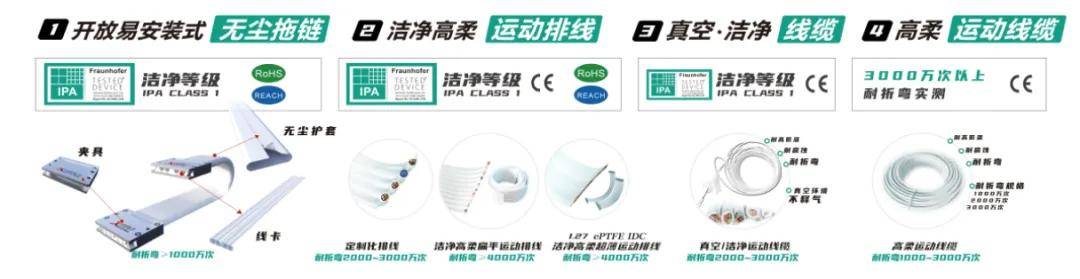 无尘拖链、洁净高柔运动排线、真空线缆、高柔运动线缆